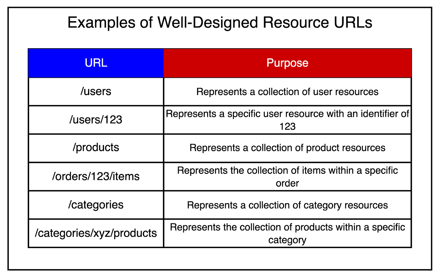- Use hierarchical paths: The URL structure should reflect resources with a hierarchical or nested relationship. For example, /orders/123/items represent the collection of items within a specific order.