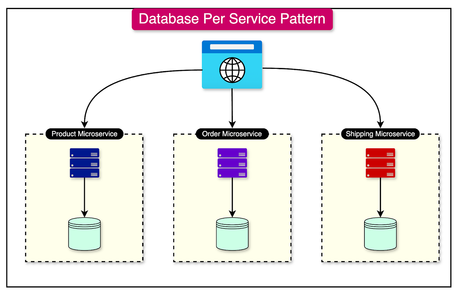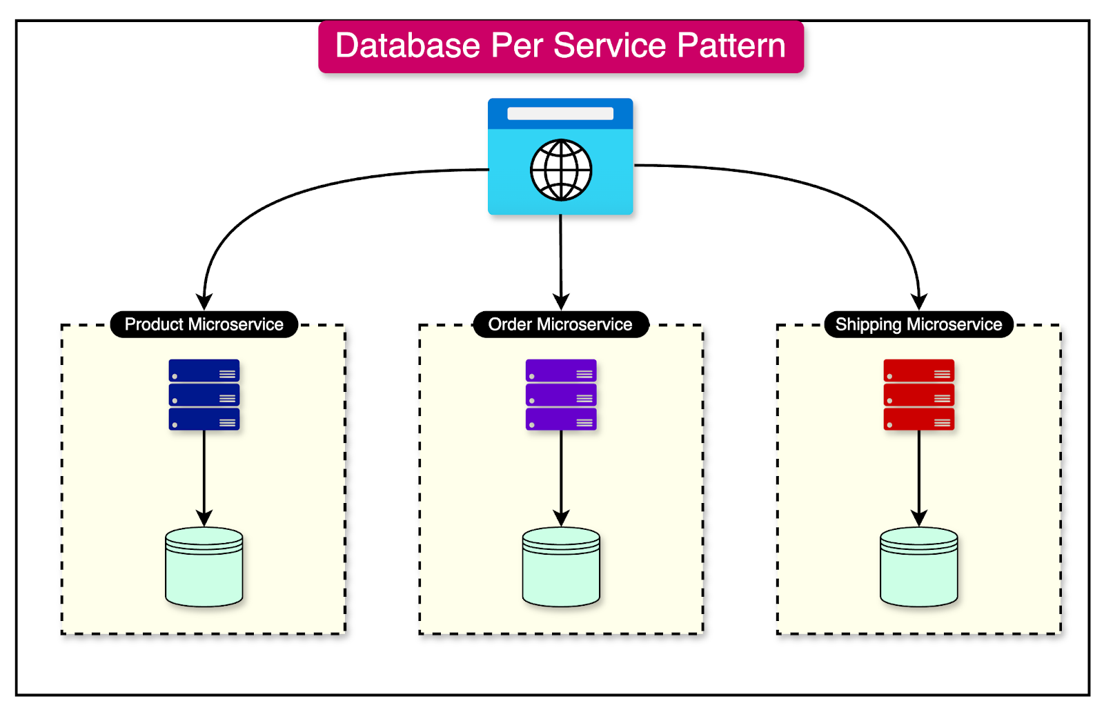 As the name suggests, the Database Per Service pattern proposes that each microservice should have its dedicated database, ensuring data isolation and autonomy.